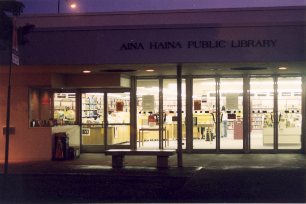 ʻĀina Haina Public Library is one of 51 branch libraries that make up the Hawaii State Public Library System -- the only statewide public library system in the United States. The library is located next to the ʻĀina Haina Shopping Center. The library opened its doors to the public on October 18, 1962 with 8,000 books, replacing bookmobile service to the area. At the time it was only the second library east of the main branch downtown to serve the communities to East Honolulu (the other library was Waikiki Library established in 1952).